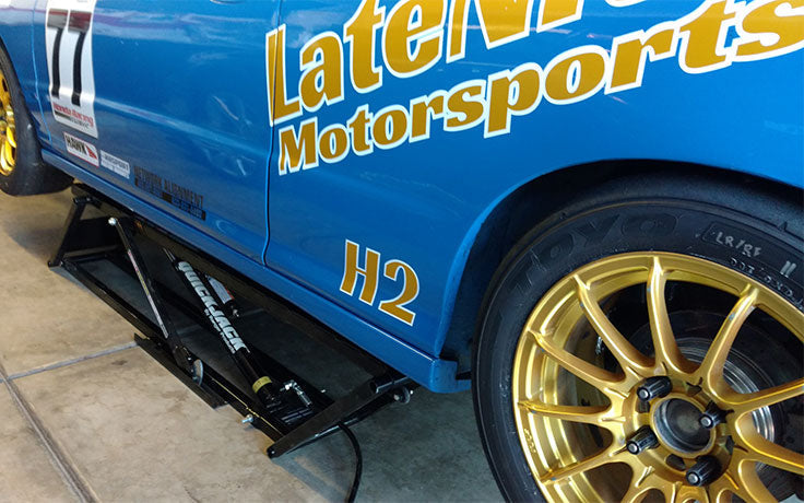 - Low-profile jack frames fit under most race cars