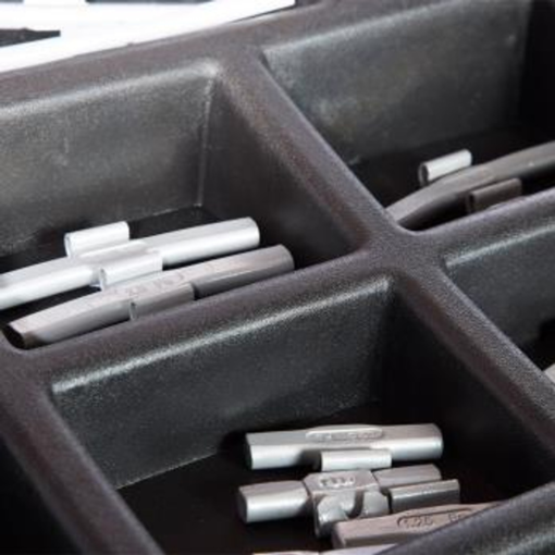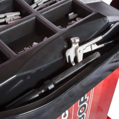 - High-volume top weight tray and side shelf storage gives you room to inventory a wide variety of wheel weights and tools
